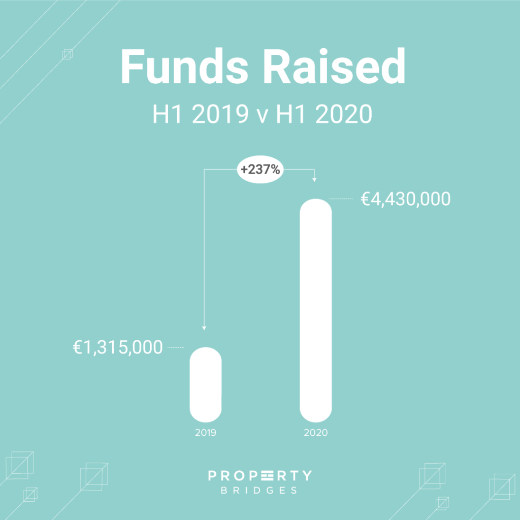Property Bridges had a remarkable first semester in 2020. With a monthly and quarterly record in investment funded, the company raised €1.4MM in June, €2.4MM in the last quarter and €4.4MM in the last 6 months.